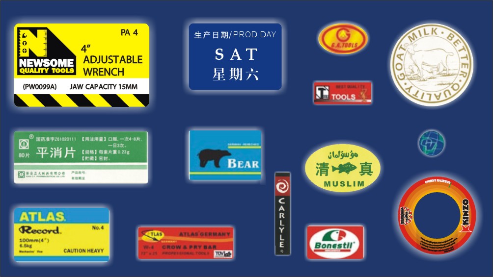 这是一般的镜面铜板纸不干胶标签,可以印成圆形,椭圆形,梯形,方形,方形圆角等不同形状的不干胶标签。这些标签都可以覆膜,覆膜后起到防水、防污,增加亮度等作用。这些手撕不干胶可用医药方面和食品方面的封口标签,可以用于瓶装物品的说明标签,以及可用于五金工具商标标贴等。